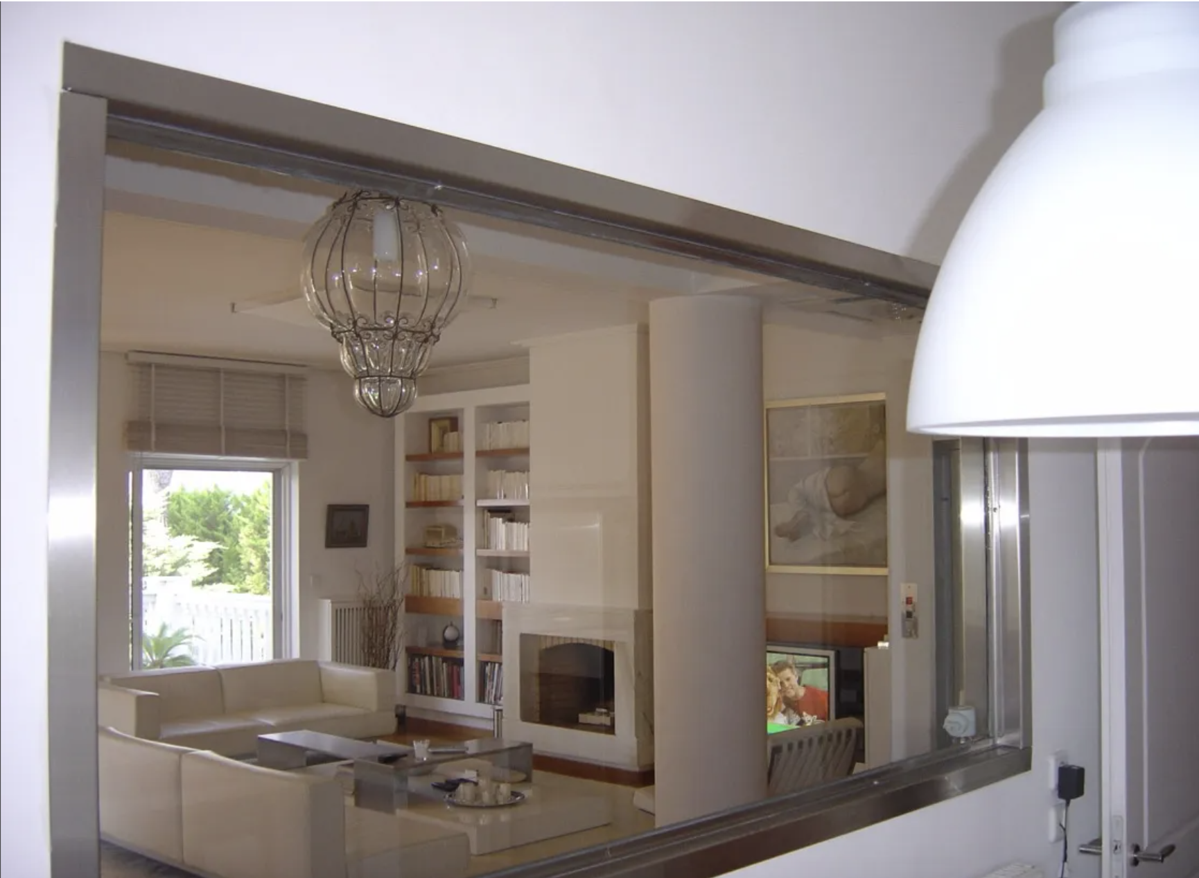 An independent apartment that includes a comfortable living room, a service room, a bathroom, and a garage for two cars.